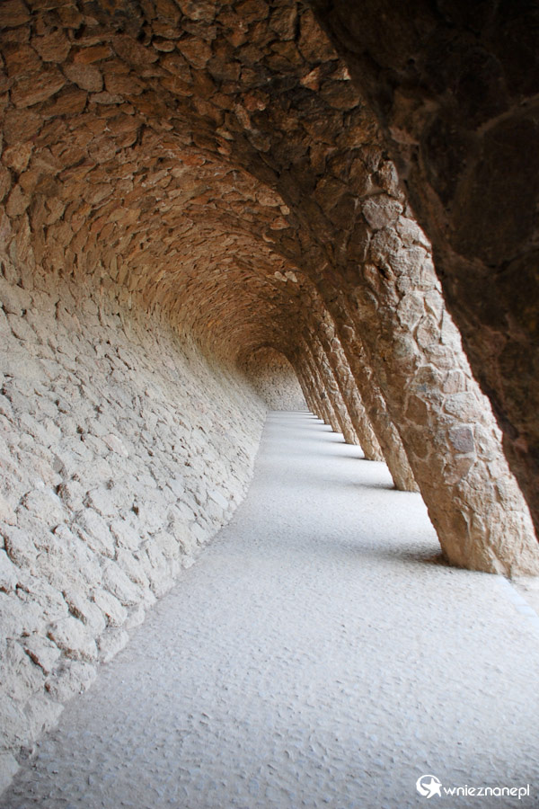 Barcelona. Zakrzywione wsporniki o ciekawym kształcie w Parku Guell.