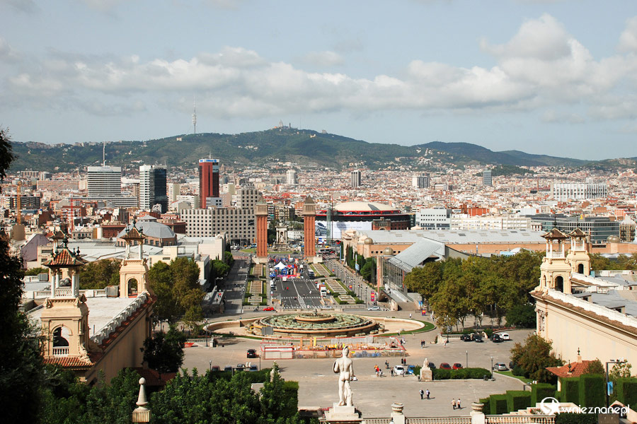 Barcelona. Rzut oka z wysokości MNAC na Font Magica oraz w dalszej perspektywie Plac Hiszpański.