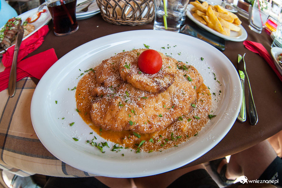 Cypr latem. Filet z kurczaka w kokosowej panierce z ananasem - na Cyprze można naprawdę pysznie zjeść.