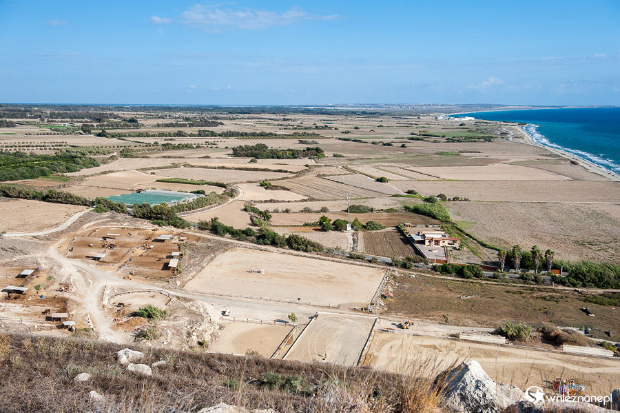 Cypr latem. Widok ze stanowiska archeologicznego Kourion na Zamorskie Terytorium Wielkiej Brytanii, Akrotiri.