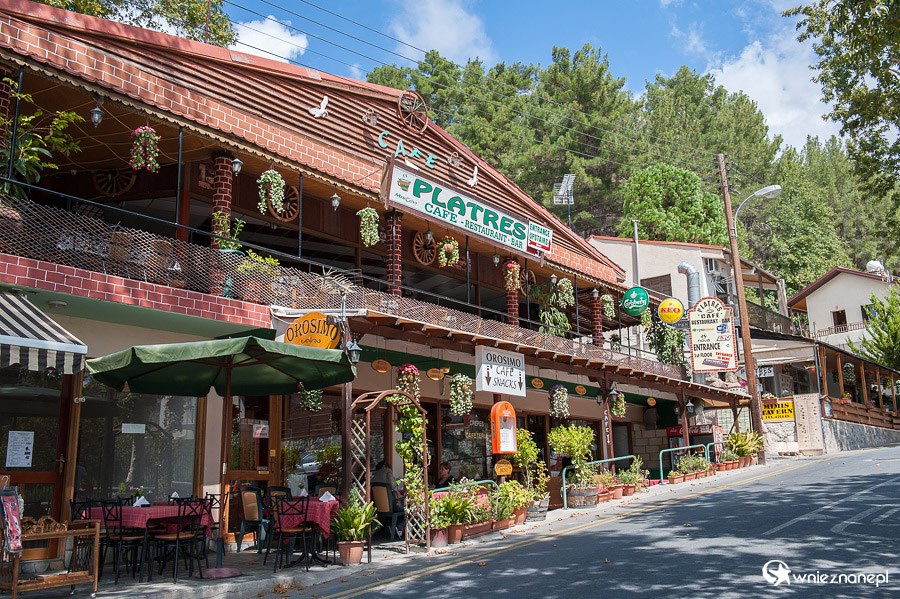 Cypr latem. Malownicza miejscowość Platres w Górach Troodos.