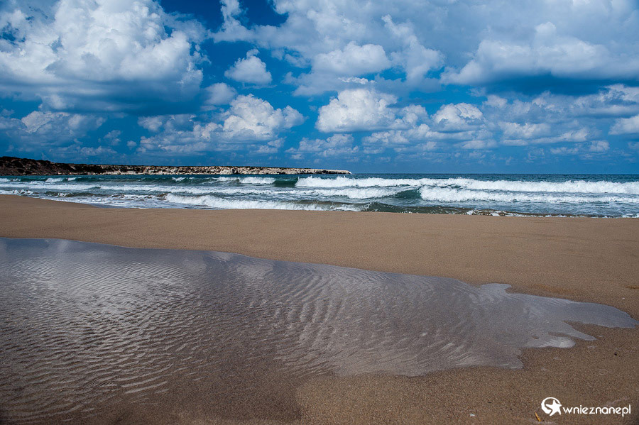 Cypr latem. Szeroka, piaszczysta plaża Lara Beach na Półwyspie Akamas.