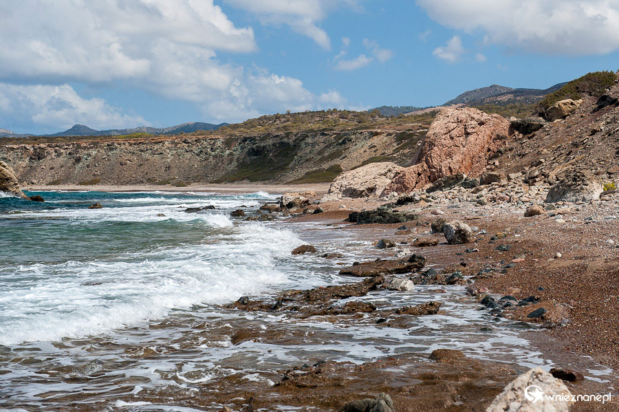 Cypr latem. Kamienie na końcu plaży Lara Beach na Półwyspie Akamas.