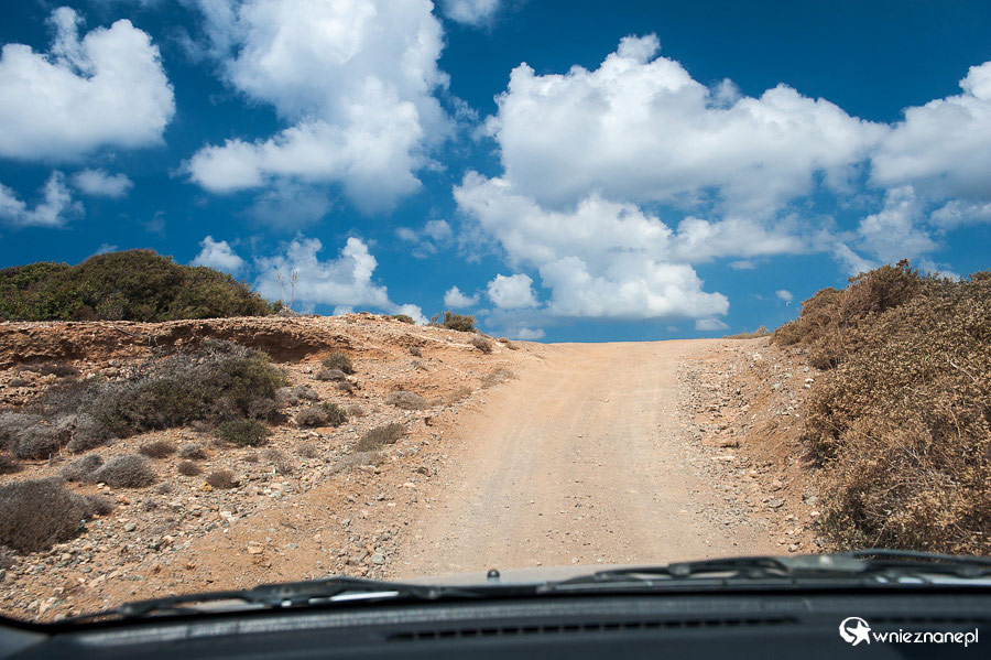 Cypr latem. Na Półwyspie Akamas są wyłącznie szutrowe drogi.