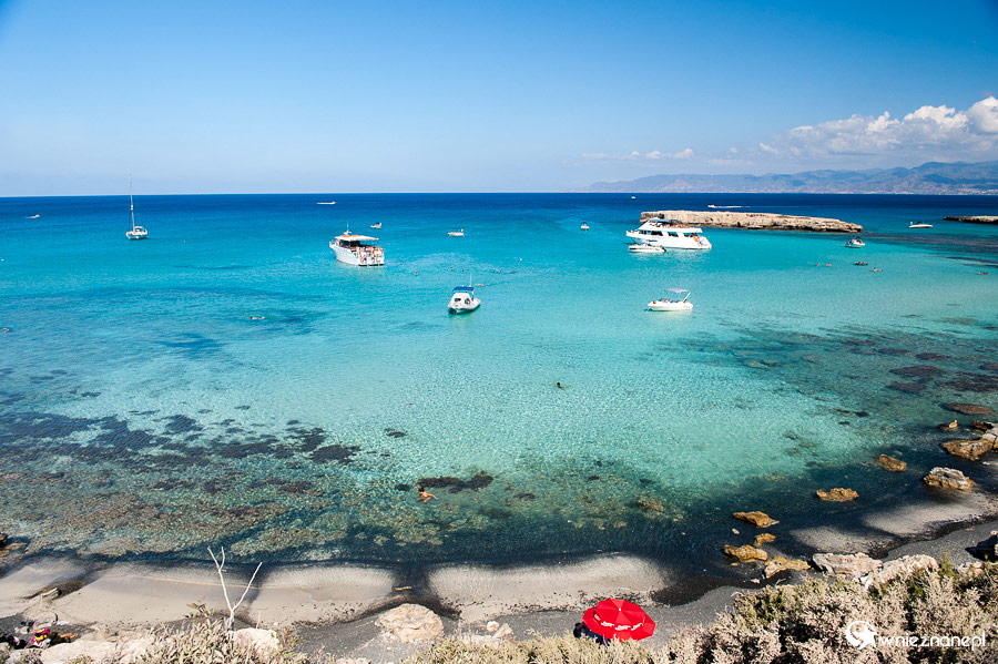 Cypr latem. Blue Lagoon (Błękitna Laguna) na Półwyspie Akamas to miejsce chętnie odwiedzane przez turystów, choć dostępne wyłącznie od strony morza. - foto: wnieznane.pl