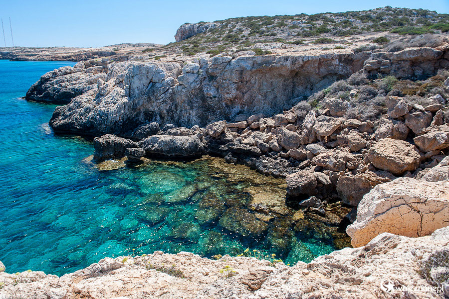 Cypr latem. Okolice łuku skalnego Kamara tou Koraka na Cape Greko.