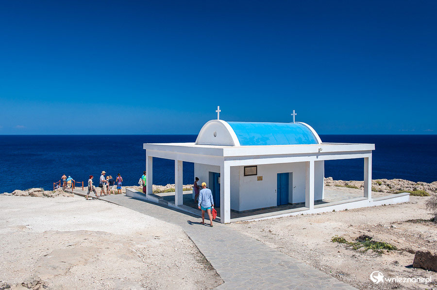 Cypr latem. Kościół Agii Anargyri, stojący nad brzegiem morza na Cape Greko.