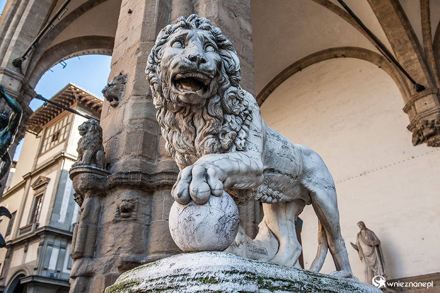 Florencja. Rzeźba lwa w Loggia dei Lanzi.