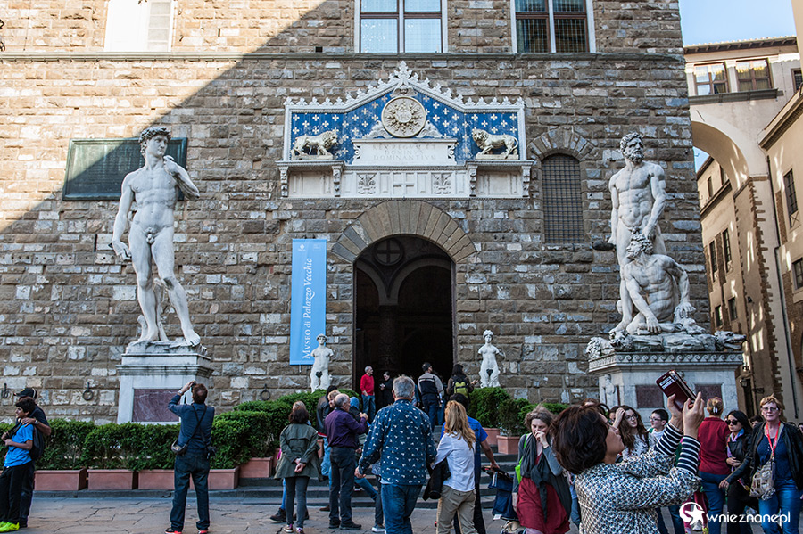 Florencja. David Michała Anioła oraz Herkules i Kakus przed wejściem do Palazzo Vecchio.
