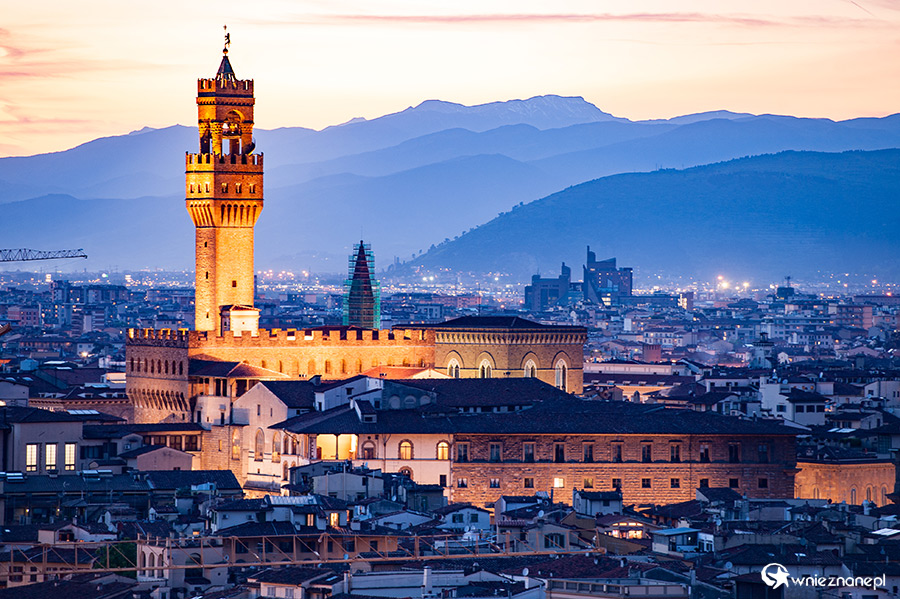Florencja. Palazzo Vecchio o zachodzie słońca.