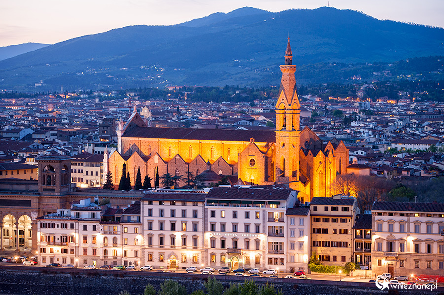 Florencja. Basilica di Santa Croce o zachodzie słońca.