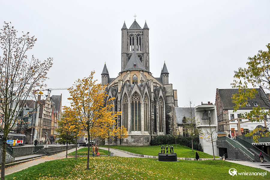 Gandawa (Gent). Widok na Sint Niklaaskerk (Kościół św. Mikołaja) od strony Botermarkt i dzwonnicy.