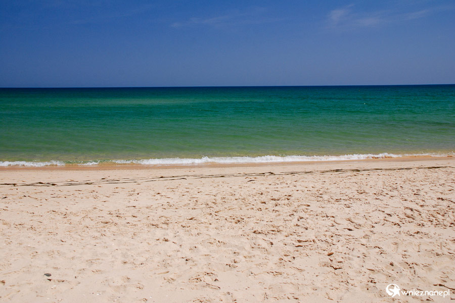 Portugalia. Algarve. Spokojne wody oceanu u brzegów Ilha do Farol.