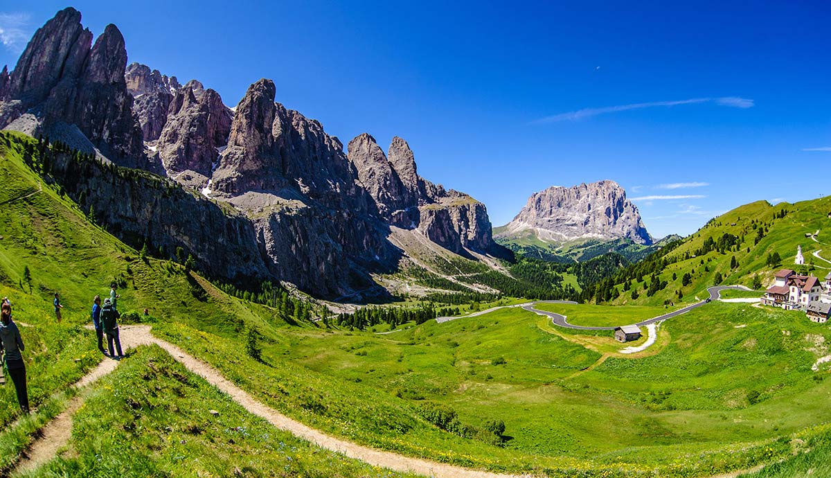 Droga do przełęczy jest wąska, ale latem bezpieczna i dosyć wygodna. Zimą pewnie konieczne będą łańcuchy. Dość powiedzieć, że co kilka minut kursują tutaj publiczne autobusy. Jedno co nas zaskoczyło, to słaba infrastruktura - jedna restauracja, 2 sklepiki, głównie ze sprzętem górskim i to tyle. I nie chodzi bynajmniej o kolejne budynki, szpecące to unikalne miejsce, ale aż się prosi choćby o ławeczki. To doskonały punkt wypadowy do pieszych wycieczek. Jest także czynna cały rok kolejka linowa. Za przełączą zaczyna się zjazd do Doliny Badia. Tutaj już nie brakuje hoteli, restauracji, sklepów i wszystkiego, czego potrzebują turyści. Mijamy także stok Alta Badia, na którym rozgrywane są zawody narciarskiego Pucharu Świata. Wracamy inną trasą - jest ładnie, ale widoki już nie takie spektakularne, jak wcześniej. Pewnie musielibyśmy pojechać dalej - albo w stronę Passo Pordoi, albo w stronę kurortu Cortina d'Ampezzo, ale... jak zwykle brakuje nam czasu. Te kilka wyrwanych godzin to i tak dla nas bonus. Przed nami jeszcze ponad 2 godziny jazdy do Doliny Stubai.