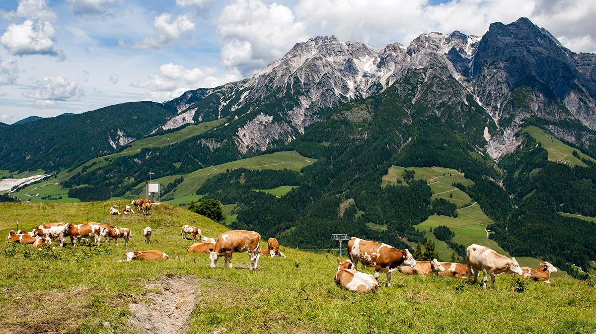 Zaraz za Salzburgiem skończyła się autostrada i zaczęły piękne widoki. Jeśli ktoś na chwilę, powinien zatrzymać się w malowniczym kurorcie wypoczynkowym i uzdrowiskowym Bad Reichenhall, gdzie reprezentacja Polski w piłce nożnej trenowała przed Euro 2002. Tuż za niemiecką miejscowością jest niewielkie, ale ładne jeziorko Saalachsee, które położone jest równolegle do drogi. Dalej trasa przebiega doliną, zamkniętą z obu stron przez wysokie góry, i wkrótce dojeżdżamy do Leogangu. Miejscowość nie jest szczególnie duża, ale nie brakuje tu atrakcji. Najważniejsza to góra Asitz, na której zlokalizowany jest bikepark. Stąd też rozpościera się wspaniały widok na całą okolicę. Trochę jak z Gubałówki, tylko skala inna :) Dzieci także nie będą się nudzić - dla nich przygotowano stanowiska edukacyjne z użyciem naturalnego strumyka oraz ścieżkę przyrodniczą i plac zabaw. Wszystko bezpłatne. Z góry poprowadzono liczne szlaki piesze. Nie może też zabraknąć typowego alpejskiego widoku, czyli rudobrązowych krów na łące na tle gór. Oczywiście, z charakterystycznymi dzwonkami na szyjach :). Swoją drogą, często krowy pasły się w takich stromych miejscach, że aż nie mogliśmy uwierzyć, że były w stanie normalnie tam stać.