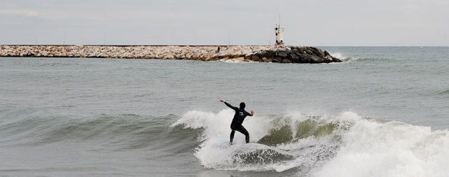 Plaża w tym miejscu jest szeroka i ładna, w piasku posadzono nawet palmy. Obok znajduje się wzmocniony kamieniami cypel, z którego rybacy łowią ryby. Spore fale powodowały, że chętnych do uprawiania windsurfingu nie brakowało.