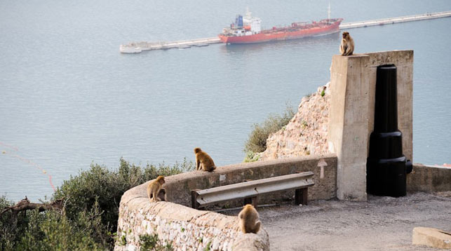 Na górze spotkać można żyjące na wolności małpy. Trzeba jednak uważać, bo ciągle dokarmiane przez turystów, potrafią wyciągnąć jedzenie z niepilnowanego plecaka ;). Mimo że podchodzą blisko, nie wolno ich głaskać, bo mogą stać się agresywne. Po krótkim odpoczynku ruszamy dalej - do górnej stacji kolejki linowej. Tam spotykamy jeszcze więcej małp. Stąd też rozpościera się fantastyczny widok na miasto i morze. Wreszcie docieramy do rozgałęzienia dróg - jedna prowadzi do tuneli, druga do stanowisk militarnych. Po drodze mijamy tablicę upamiętniającą wizytę w tym miejscu Królowej Brytyjskiej Elżbiety II. Po raz kolejny patrzymy na miasto. Z góry widać również zbudowany na wodzie pas startowy lotniska, z którego w ostatni lot wyruszył generał Sikorski. Obserwujemy także boiska sportowe, granicę i wybrzeże Hiszpanii. Warto dodać, że w poprzek pasa startowego przebiega jedyna wyjazdowa droga lądowa z miasta. Podczas startu czy lądowania samolotu jest ona zamknięta, a samochody utykają w gigantycznym korku. Zresztą w godzinach szczytu do granicy ciągną się kilometrowe sznury samochodów.