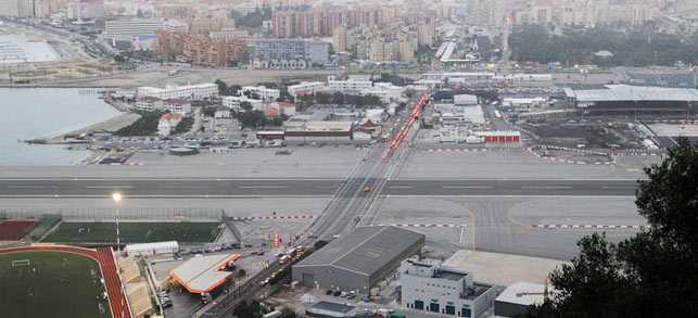 Widok na lotnisko oraz drogę, która je przecina. Następnie przejście graniczne pomiędzy, a w oddali Hiszpania. (foto: wnieznane.pl)