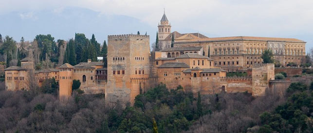 Widok na Alhambrę z jednego ze wzgórz w Granadzie. (foto: wnieznane.pl)