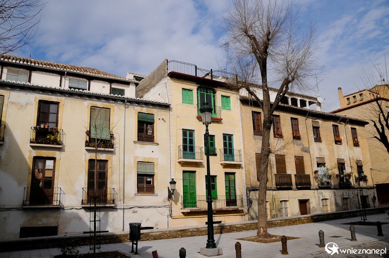 Hiszpania. Jeden z wielu placów i domy mieszkalne w Granadzie.