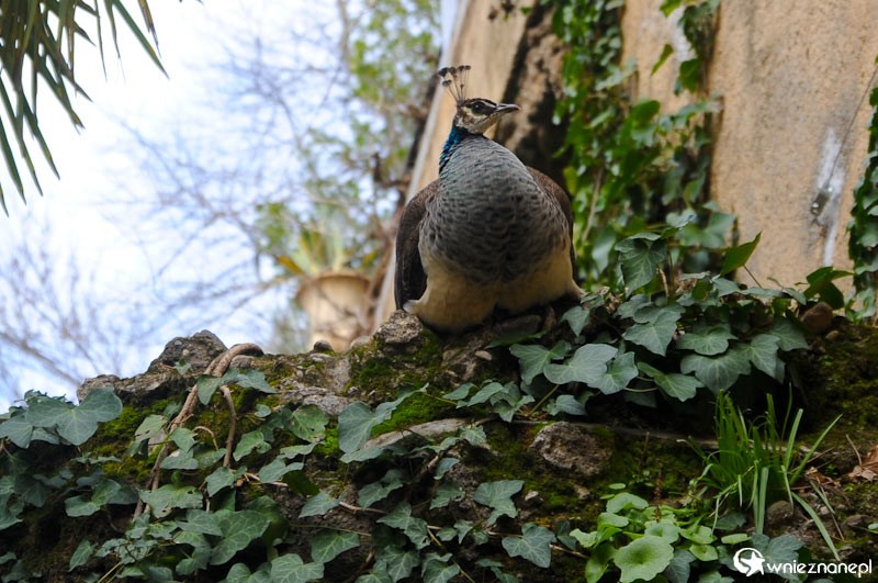 Hiszpania. Paw w przepięknych ogrodach Alhambry i Alcazaby w Granadzie.