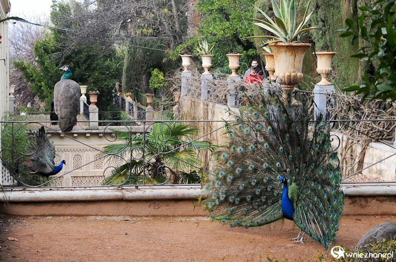 Hiszpania. Pawie w ogrodach przy Alhambrze i Alcazabie w Granadzie.