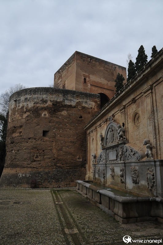 Hiszpania. Zabytkowa fontanna na terenie Alhambry w Granadzie.