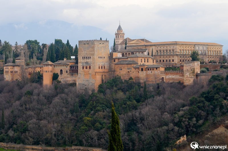 Hiszpania, Granada. Przepiękny widok na Alhambrę z jednego ze wzgórz.