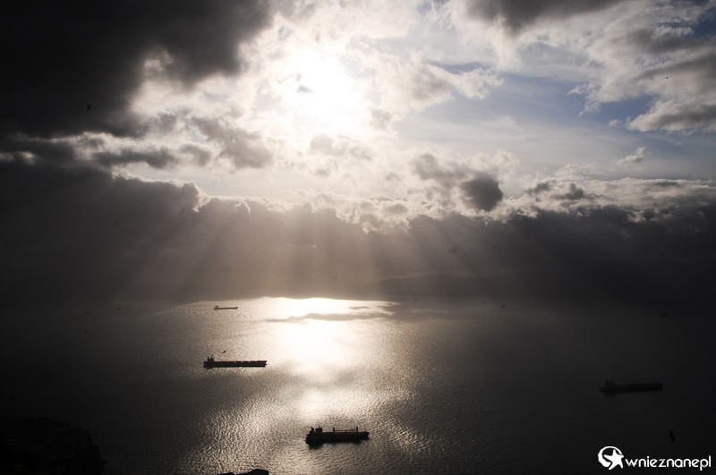 Gibraltar. Fantastyczne słoneczne refleksy widziane z Upper Rock.