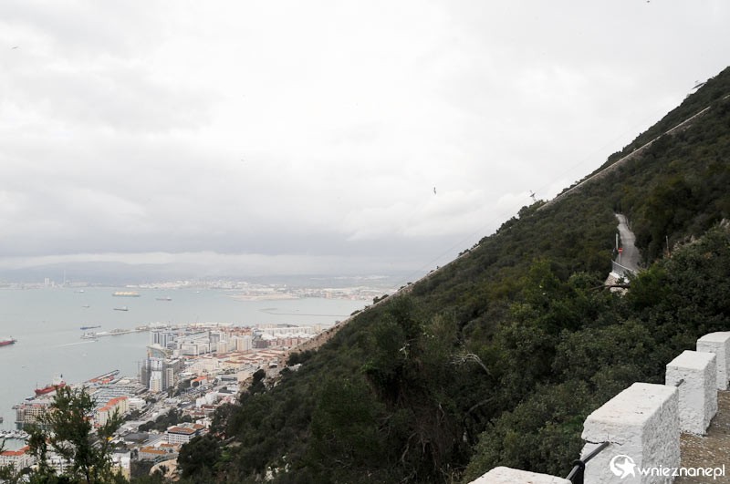 Gibraltar. Wąska droga na Upper Rock, w dole widoczne miasto i zatoka.