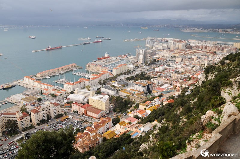 Gibraltar. Widok z Upper Rock na Hiszpanię.
