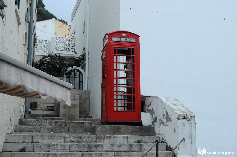 Gibraltar. Charakterystyczna brytyjska budka telefoniczna w mieście.