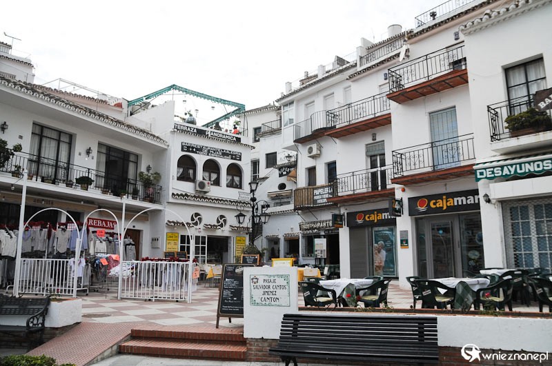 Hiszpania. Malowniczy placyk w białej wiosce Mijas Pueblo.