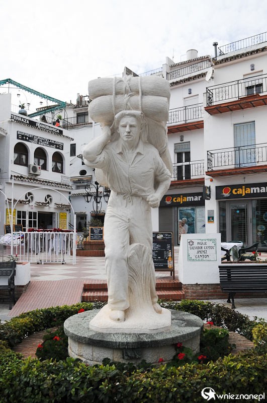 Hiszpania. Rzeźba na placu w malowniczej białej wiosce Mijas Pueblo.