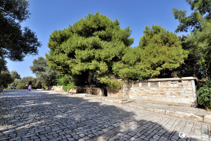 Ateny. Szeroka brukowana aleja prowadząca do Akropolu.