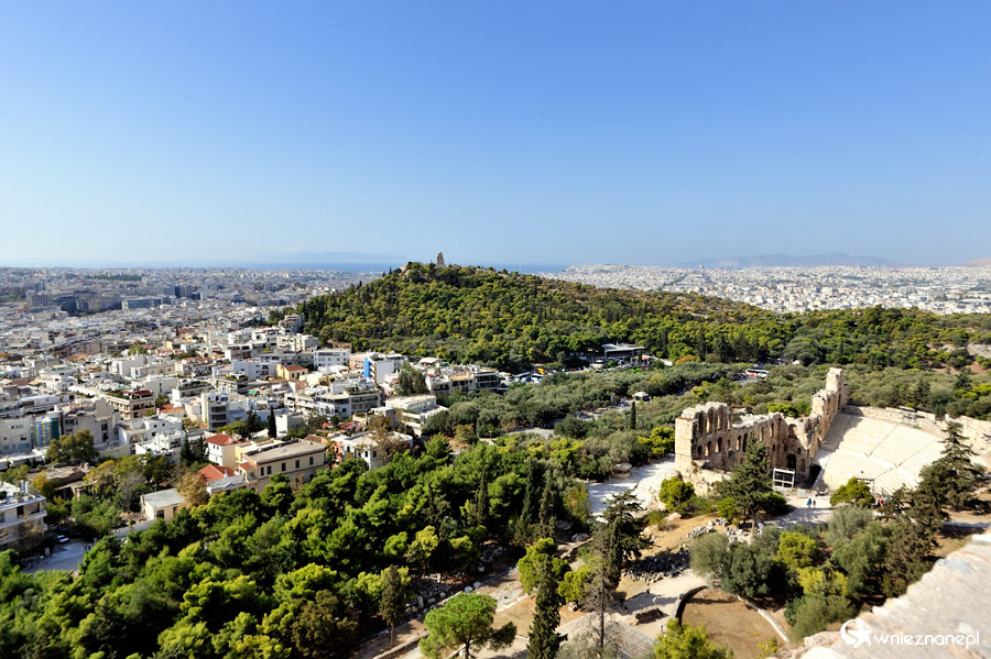 Ateny. Widok z Akropolu na Odeon i Wzgórze Filopapusa.