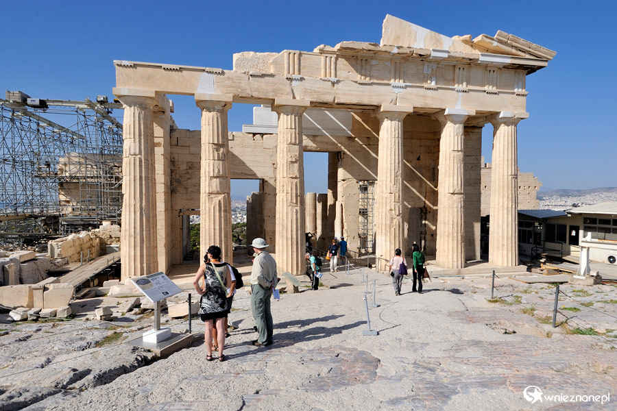 Ateny. Marmurowe Propyleje - wejście na teren Akropolu.