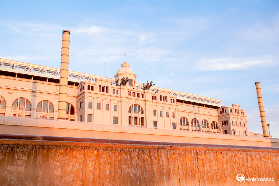 Barcelona. Stadion Olimpijski. Rzut oka z wysokości pobliskich wodnych kaskad.