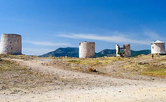 Jednym z ciekawszych miejsc w Bodrum jest wzgórze z zabytkowymi greckimi wiatrakami. Można do nich podejść, dotknąć, a nawet wejść do środka, jeśli któryś jest akurat otwarty (lub w ogóle nie ma drzwi...). Rozpościera się stąd fantastyczny widok na miasto i okolicę. Powiewający tu wiaterek przyjemnie odświeża, a cisza pozwala na chwilę oderwać się od miejskiego zgiełku. Ewidentnie miejsce to jest popularne również wśród młodzieży, o czym świadczą chociażby sterty potłuczonego szkła.