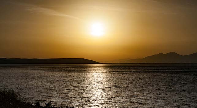 W okolicy jeziora żyje mnóstwo różnych gatunków ptaków, w tym flamingi, ale nie udało nam się ich zobaczyć. Mogliśmy za to obejrzeć fantastyczny zachód słońca nad jeziorem. Widok był naprawdę piękny.