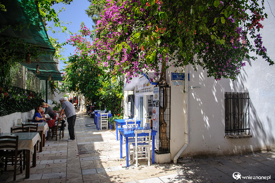 Bodrum. Białe budynki i kwitnące bugenwille przypominają klimat greckich wysp.