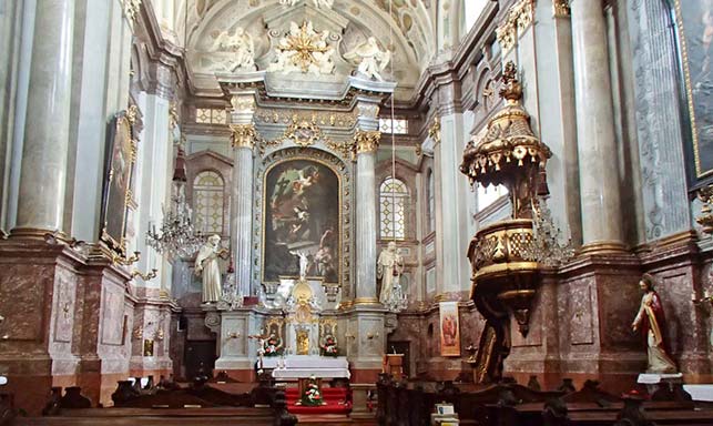 Do zwiedzania Bratysława wracamy po południu. Zanim powróciliśmy na starówkę odwiedzamy niektóre z okolicznych kościołów. Nie są one zbyt imponujące z zewnątrz, ale wewnątrz kryją prawdziwe skarby. Tak jest z Kościołem i Klasztorem Elżbietanek. Wnętrza świątyni są bardzo bogato zdobione. Problem w tym, że niemożliwe jest zobaczenie ich z bliska. Otwarta jest tylko kościelna kruchta. Dostępu do dalszej części świątyni broni zamknięta krata. Podobne niemiłe niespodzianki czekają nas również w innych bratysławskich świątyniach. Kościół Najświętszego Odkupiciela (Kostol Najsvätejšieho Spasiteľa) też oglądamy tylko z perspektywy kruchty.