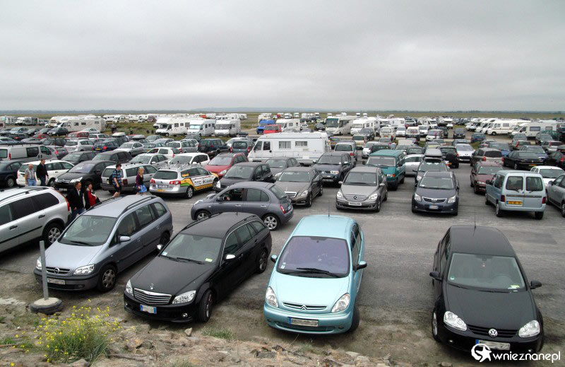 Północna Francja. Zatłoczony parking przy wyspie Mont Saint-Michel.