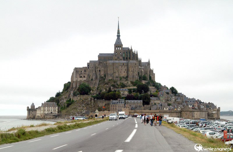 Północna Francja. Spacer groblą do imponującej wyspy Mont Saint-Michel.