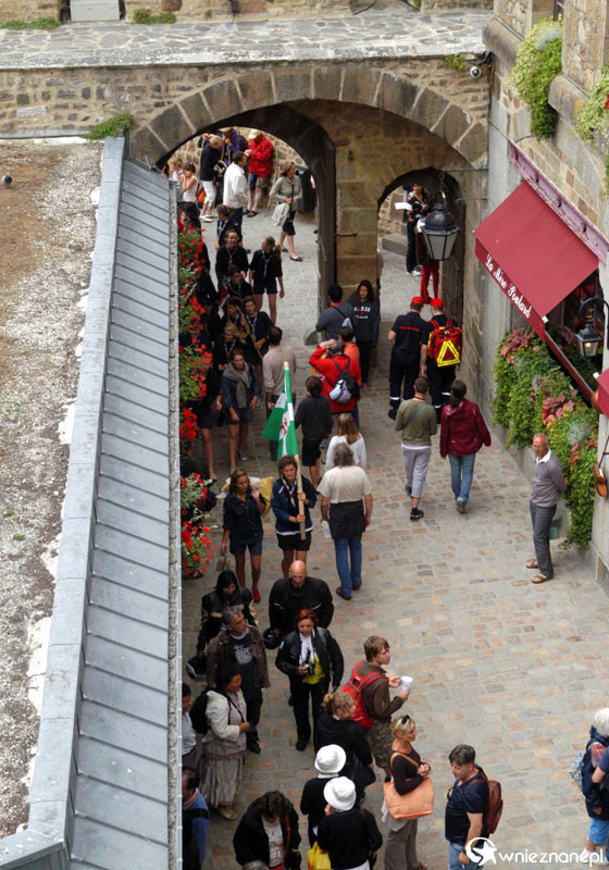 Północna Francja. Zabytkowe kamieniczki w miasteczku na wyspie Mont Saint-Michel.