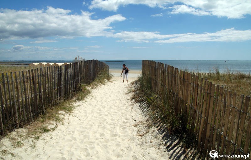 Bretania. Przepiękna, szeroka plaża ze złocistym, drobnym piaskiem w Carnac.