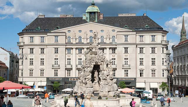 Tuż obok jest drugi z najważniejszych placów, czyli Targ Zielny. Jego nazwa wzięła się od odbywającego się w tym miejscu targu owocowo-warzywnego. Do dzisiaj można tu zakupić różnego rodzaju smakołyki. Na środku placu stoi Fontanna Parnas. Barokowa fontanna pochodzi z lat 1690-95. Z boku placu zwraca uwagę Kolumna Trójcy Przenajświętszej. Zielny Targ otoczony jest ładnymi barokowymi kamienicami. Jest tu pałac opata, a nieco z tyłu Klasztor Kapucynów wraz z kościołem Znalezienia Krzyża św.
