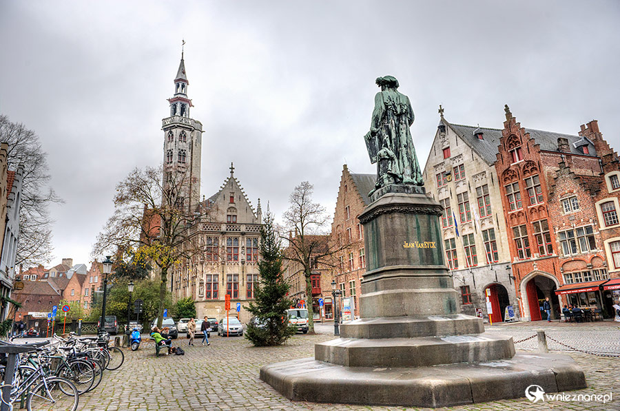 Brugia (Brugge). Pomnik Jan Van Eyck i plac Jan Van Eyckplein.