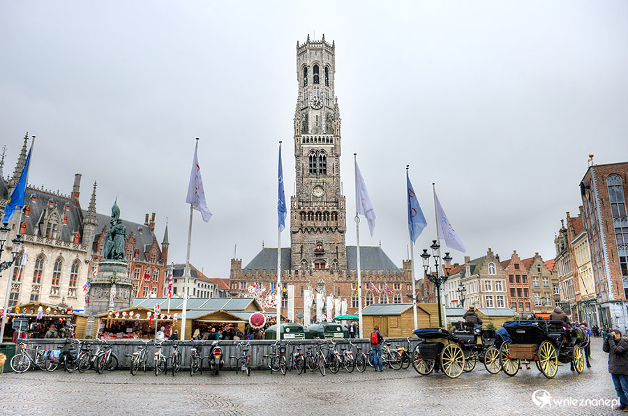 Brugia (Brugge). Widok na Markt - główny plac miasta. Na wprost Belfort (dzwonnica).