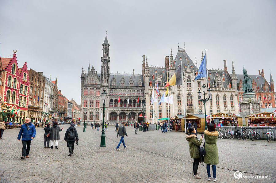 Brugia (Brugge). Widok na Markt - główny plac miasta. Na wprost Provinciaal Hof. - foto: wnieznane.pl